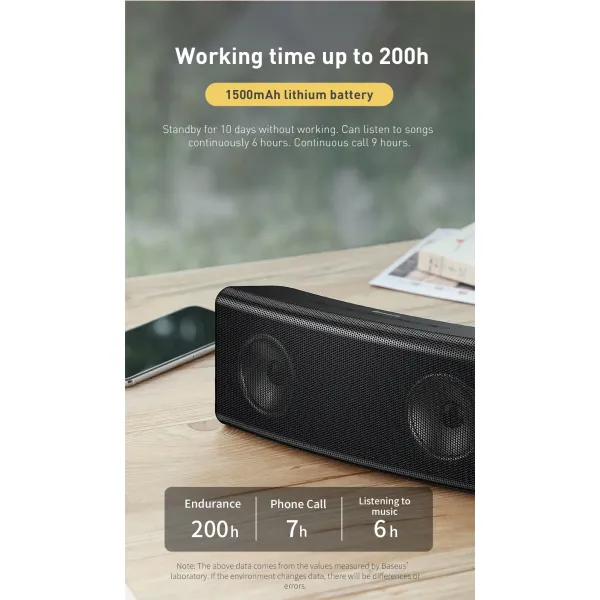 Baseus Encok Wireless Speaker E08 зможе порадувати якісним гучним звуком без сторонніх шумів. Два 40мм динаміка по 3 Вт кожен дають хороший сильний звук, роблять звук чистішим і радують слух глибшими басами, створюючи ефект оточення музикою на 360 градусів.