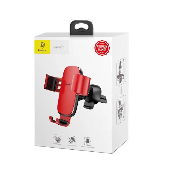 Автодержатель для телефона Baseus Metal Age Gravity в воздуховод Красный