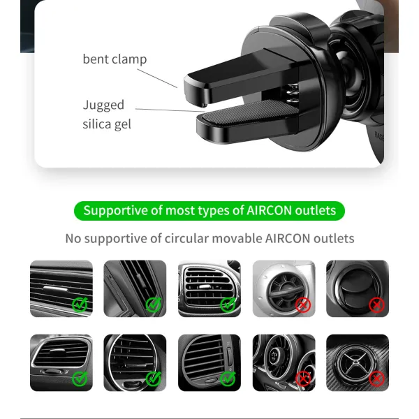 •Держатель не будет занимать много места в автомобиле – благодаря компактным размерам. Также, компактные размеры практически не влияют на выдув воздуха из решетки воздуховода.