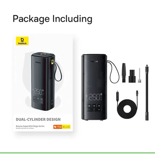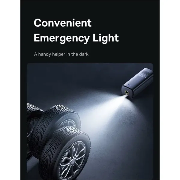 Завдяки потужності в 120 Вт і продуктивності 35 літрів на хвилину, цей автомобільний компресор Baseus здатний швидко накачати автомобільні шини. Автоматизований компресор Baseus може впоратися із завданням за кілька хвилин, що особливо важливо в екстрених ситуаціях на дорозі. Максимальний тиск до 150 PSI дає змогу використовувати його не тільки для легкових автомобілів, а й для мотоциклів, велосипедів та інших надувних виробів.