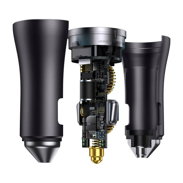 Зарядний пристрій від прикурювача Baseus Golden Contactor Pro Dual Quick Charger Car Charger 40W 2Type-C не тільки дуже функціональний, а й має приголомшливий вигляд. Воно виготовлене з міцного матеріалу, стійкого до високих температур і зовнішніх пошкоджень. Компактний розмір дає змогу легко розмістити його в прикурювачі автомобіля. Матеріали і технології захисту, що використовуються в зарядці, виключають ймовірність короткого замикання, перегріву, перезарядки та інших небажаних чинників.