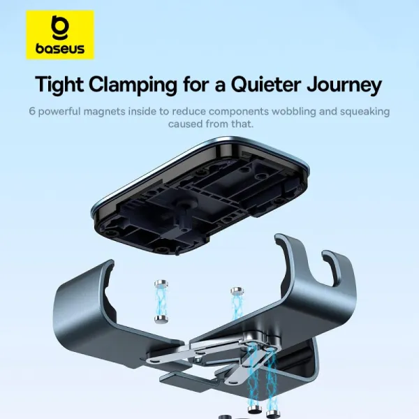 - Безшумна робота: Корпус тримача Baseus знижує рівень шуму завдяки шести потужним магнітам.