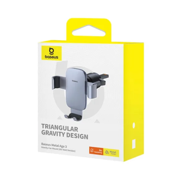 Автотримач для телефона Baseus Metal Age3 Gravity Air Outlet Version в повітропровід – це поліпшена версія популярного автомобільного тримача, що поєднує в собі сучасні технології та практичний дизайн. Завдяки використанню сильних магнітів і поліпшеного механізму кріплення, тримач гарантує надійну фіксацію вашого смартфона в автомобілі під час руху.