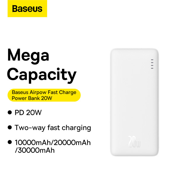 Power bank Baseus Airpow Fast Charge 10000mAh 20W - это компактный, элегантный, инновационный и многофункциональный блок питания с емкостью 10000 мАч, изготовленный из высококачественных материалов.