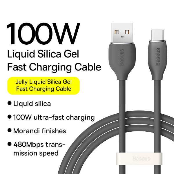 Кабель Baseus Jelly Liquid Silica Gel Series Fast Charging Data Cable USB to Type-C 100W 20V 5A 1.2m підтримує зарядку потужністю 100 Вт і забезпечує швидкість передавання даних до 480 Мбіт/с.