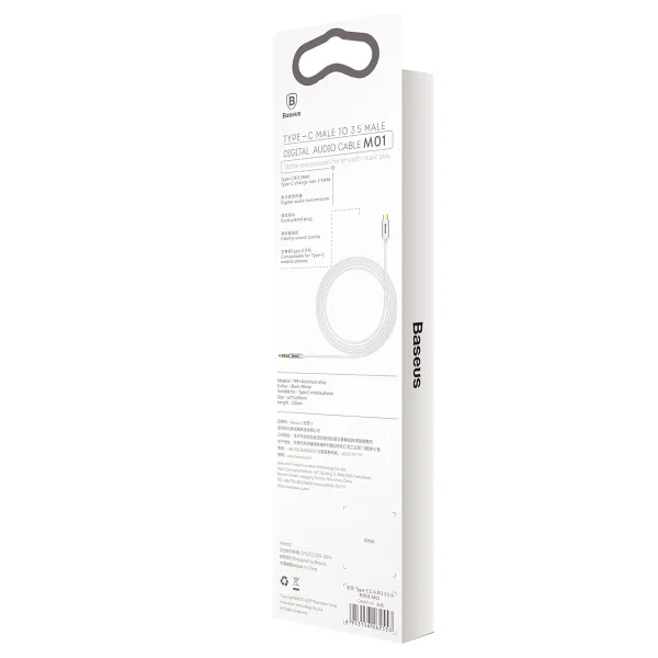 • Перехідник Baseus M01 Yiven Type-C male To 3.5 male Audio Cable дозволить слухати музику на сучасних пристроях з роз'ємом USB-C і має достатню довжину для домашнього користування. Штекер AUX є стандартом для більшості аудіо пристроїв, в той час як USB-C передбачений в смартфонах, ноутбуках, планшетах та інших гаджетах.