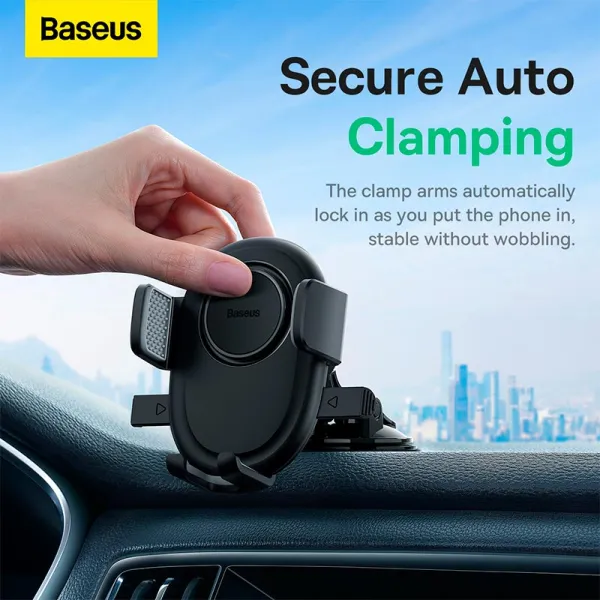 Крепление телефона очень простое. Просто поместите телефон между рычагами, надавив на него, и держатель Baseus затянется. Сильное сжатие удержит ваше устройство, не позволяя ему отсоединиться или выпасть, что может привести к повреждению.