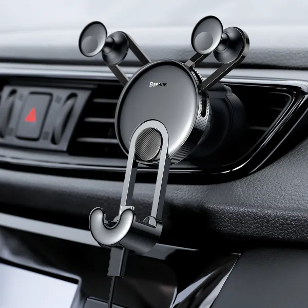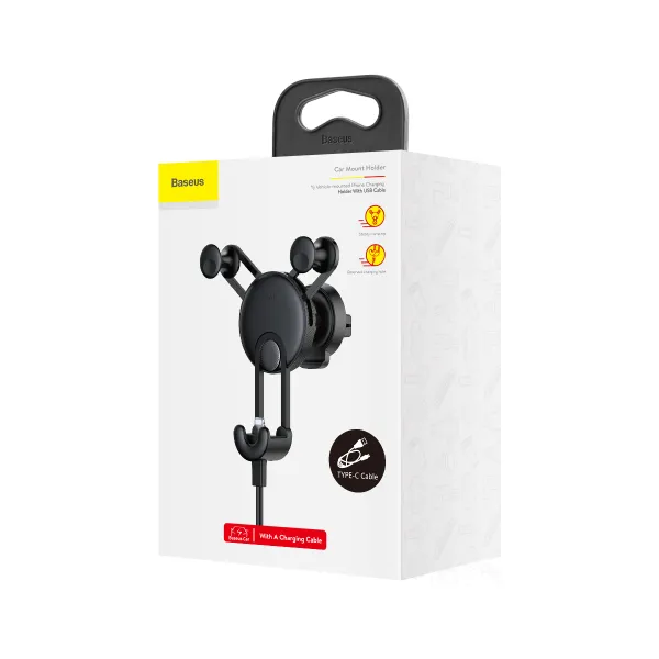 •Автодержатель для телефона Baseus YY Car Mount– это элегантный, функциональный и стильный девайс, который обеспечит надежную фиксацию вашего смартфона в автомобиле. В комплекте идет специальный кабель USB-Type-C (длина 1 м) мощностью 2A для зарядки смартфонов, в которых имеется разъем Type-C, и который легко и прочно фиксируется в нижней части держателя и надежно крепится для подключения к смартфону – это позволяет подключать и заряжать смартфон не вытаскивая его из держателя.