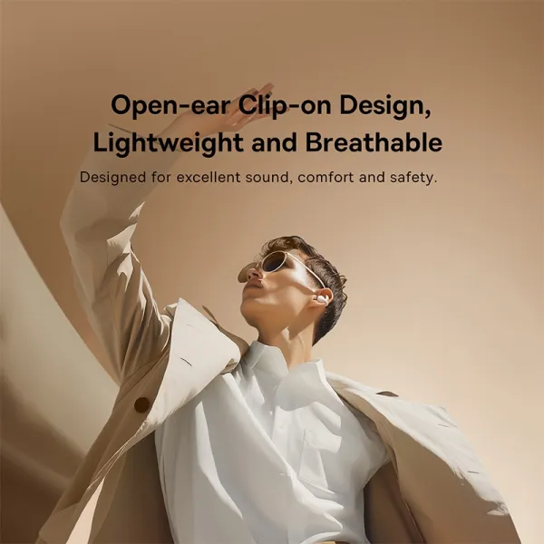 Наушники открытого типа Baseus Bass 15 Clip Open-Ear Wireless TWS Earbuds плотно прилегают к уху, но при этом обеспечивают комфорт при длительном ношении, даже если вы интенсивно занимаетесь спортом. Гарнитура легкая, весит всего 4,6 г, не создавая ощущения тяжести или заложенности в ушах.