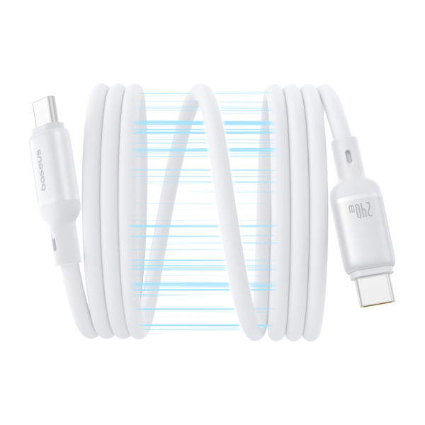Кабель type-c - type-c 240w Baseus PicoGo Magnetic Liquid Silicone Series Fast Charging Data Cable Type-C to Type-C 240W 1m устойчив к царапинам и пятнам и не желтеет со временем.