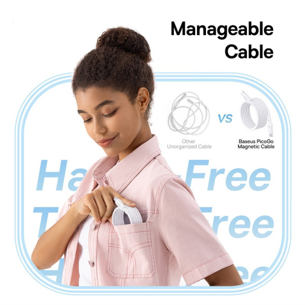 Благодаря магнитному механизму, шнур легко складывается, обеспечивая удобное хранение без запутывания, а его долговечность и гибкость обеспечивается за счет высококачественной конструкции из жидкого силикона.