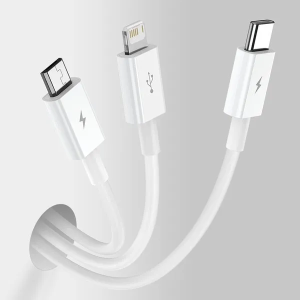Кабель Baseus Superior Series 3-in-1 Fast Charging Data Cable USB to Lightning+Type-C+MicroUSB 3.5А 1.5m – это кабель USB / Lightning, Micro, Type-C длиной 150 см. Поддерживает общую зарядку 3,5 А и передачу данных 480 Мбс (только для разъема Lightning).