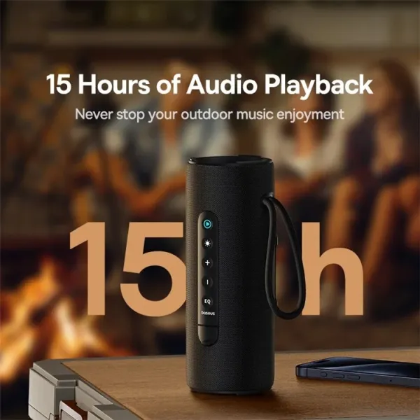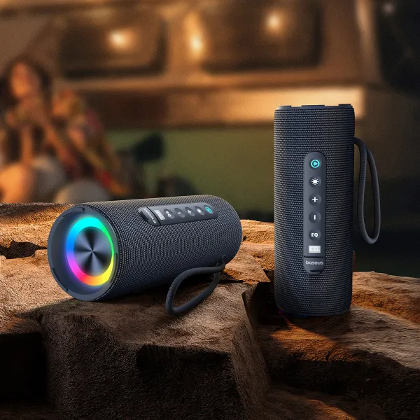 Разработанный с учетом активного отдыха на открытом воздухе, портативная колонка блютуз Baseus долговечна и устойчива к суровым погодным условиям благодаря уровню водонепроницаемости IPX5. Независимо от того, используете ли вы его на пляже, в саду или во время кемпинга, портативная колонка Baseus станет вашим надежным спутником. Компактный размер и прочный корпус облегчают переноску, а устойчивое основание позволяет размещать его вертикально или горизонтально на любой поверхности.