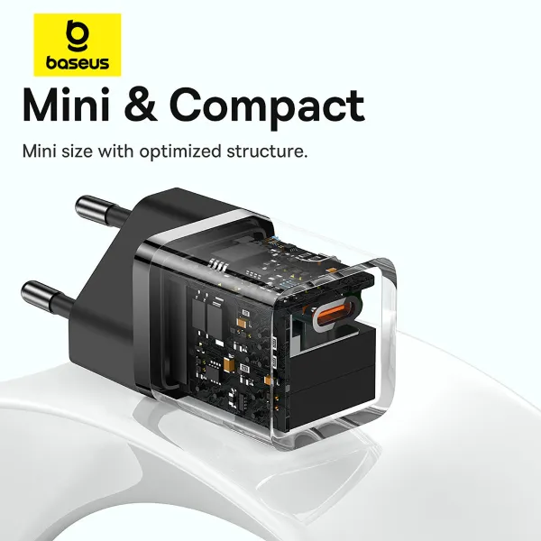 Зарядное устройство Baseus GaN5 имеет стильный и эргономичный дизайн, внешний корпус изготовлен из огнеупорного поликарбоната, который устойчив к высоким температурам и внешним повреждениям.
