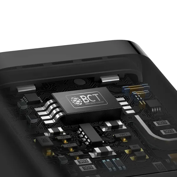Термостойкий материал и новая технология охлаждения BCT (Baseus Cooling Technology) позволяет внутреннему теплу моментально рассеиваться с наружной поверхности корпуса и поддерживать нормальную рабочую температуру даже в тяжелых условиях эксплуатации. Интегрированный интеллектуальный чип гарантирует защиту от прекращения питания, а для безопасной зарядки подключаемых устройств с различными потребностями в мощности предусмотрена автоматическая регулировка требуемого тока.