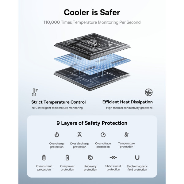 Для безопасности Ваших гаджетов, в устройство повербанка базеус встроено 9 уровней интеллектуальной защиты.