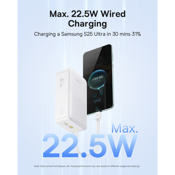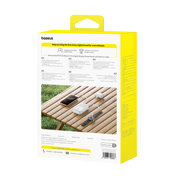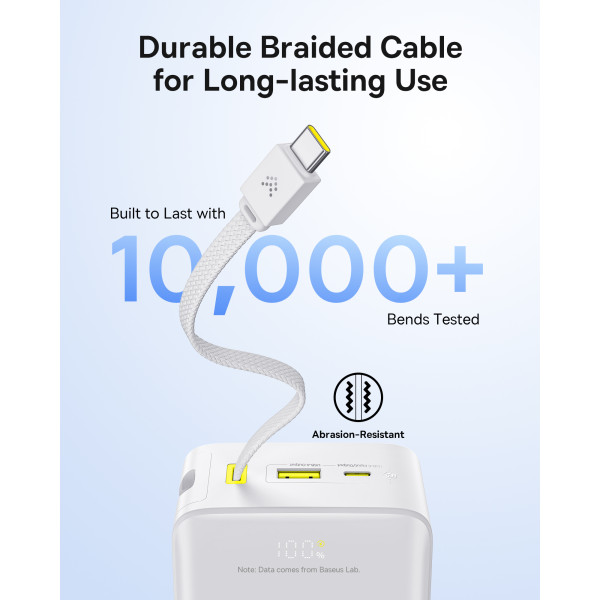 Power bank Baseus EnerFill FC51 Bipow2 Pro 30000mAh 22.5W 2.4A с технологией QC3.0+PD3.0 та Type-C кабелем 22.5W - это компактный пауэрбанк емкостью 30000 мАч с встроенным кабелем: USB-C. Всего у него два порта: один выход USB-A и один выходной/входной порт USB-C. Павербанк Baseus поддерживает двунаправленную быструю зарядку, а также поддерживает такие протоколы быстрой зарядки, как: