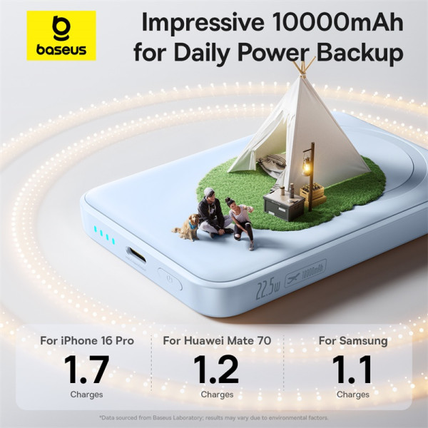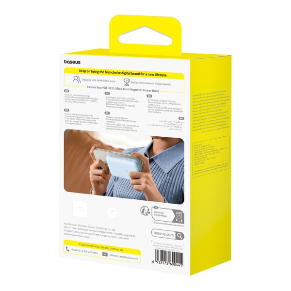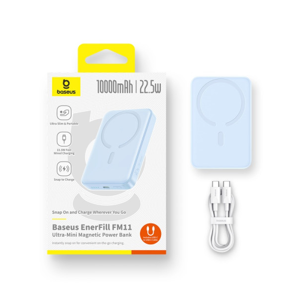 Power bank Baseus EnerFill FM11 Ultra-Mini Magnetic 2in1 10000mAh 22.5W 3A QC3.0+PD3.0 - это уникальная батарея для беспроводной зарядки вашего смартфона с емкостью 10000 мАч, стильным внешним видом и портом USB Type-C, позволяет возобновлять энергию двух девайсов одновременно.