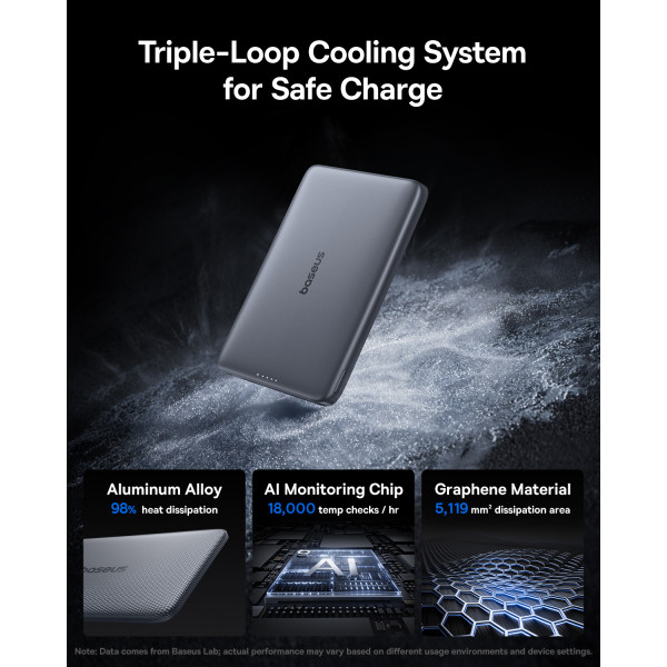 Powerbank Baseus имеет 1 Type-C (USB Type-C PD3.0) мощностью 3A, который поддерживает технологию быстрой зарядки и поможет Вам быстро заряжать различные девайсы: