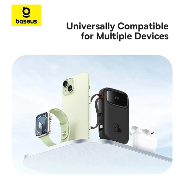 Павер банк Baseus предназначен для работы с большинством популярных устройств с разъемами USB-C или Lightning. Не только для устройств Apple и телефонов Android, но и для беспроводных колонок, фотооборудования, фонарей и т.д.