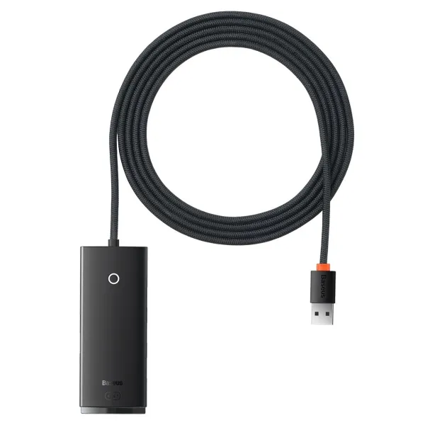 Адаптер Baseus 4in1 Lite Series 4-Port Type-A HUB Adapter имеет компактный размер и изящную форму. Он изготовлен из прочного материала, который отлично отводит тепло изнутри. Подключение к ноутбуку осуществляется с помощью небольшого кабеля с разъемом USB-A на конце.
