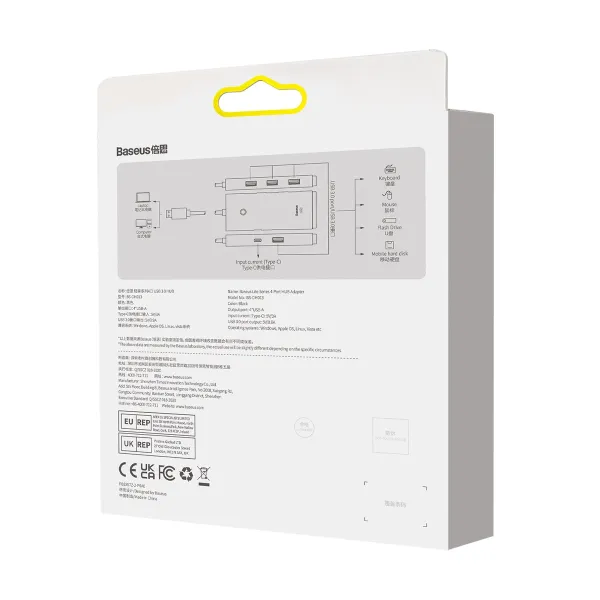Адаптер Baseus 4in1 Lite Series 4-Port Type-A HUB Adapter изготовлен из прочного пластика, который обеспечивает долговечность и надежную защиту внутренних компонентов. Кроме того, USB -хаб Baseus 4in1 Lite Series 4-Port Type-A HUB Adapter предотвращает появление отпечатков пальцев на поверхности.