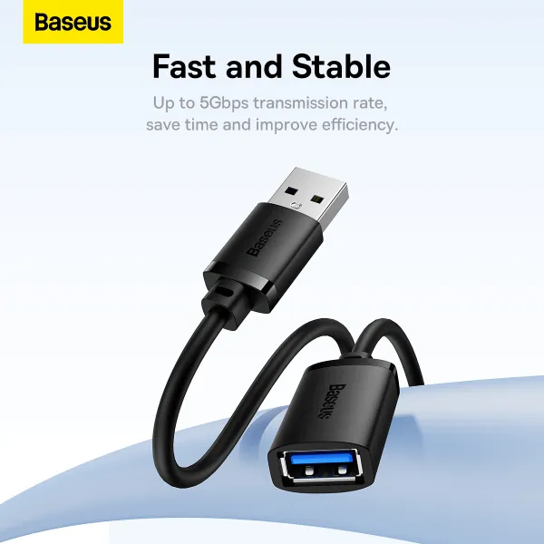 USB удлинитель Baseus AirJoy Series USB3.0 to USB3.0 Extension кабель 5м обеспечивает быстрое и надежное подключение устройств, оснащенных портами USB. Благодаря своей универсальности этот кабель идеально подходит для многих применений. Вы можете использовать его для передачи данных между различными устройствами, подключения принтера, мыши, клавиатуры и других компьютерных аксессуаров.