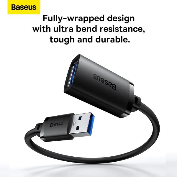 Кабель-удлинитель USB Baseus имеет ряд защитных элементов, повышающих его долговечность и безопасность использования. Усиленные концы кабеля предотвращают разрыв в самых критических точках, а более толстая ПВХ-обмотка защищает от механических повреждений и изгибов, обеспечивая надежность даже при интенсивном использовании. Кроме того, специальная конструкция штекера обеспечивает надежное и безопасное соединение, сводя к минимуму риск повреждения USB-порта на целевом устройстве.