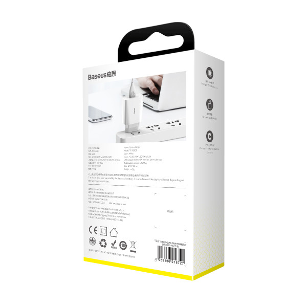 •Зарядное устройство Baseus Speed Mini QC Single U QC3.0 18W USB 3A имеет стильный и эргономичный дизайн, внешний корпус изготовлен из огнеупорного поликарбоната, который устойчив к высоким температурам и внешним повреждениям.