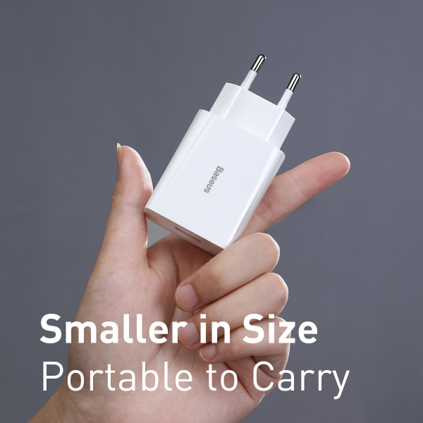 •Зарядка Baseus Speed Mini QC Single U QC3.0 18W USB 3A обладает продуманной конструкцией, которая позволяет подключать девайс для зарядки без каких-либо трудностей.