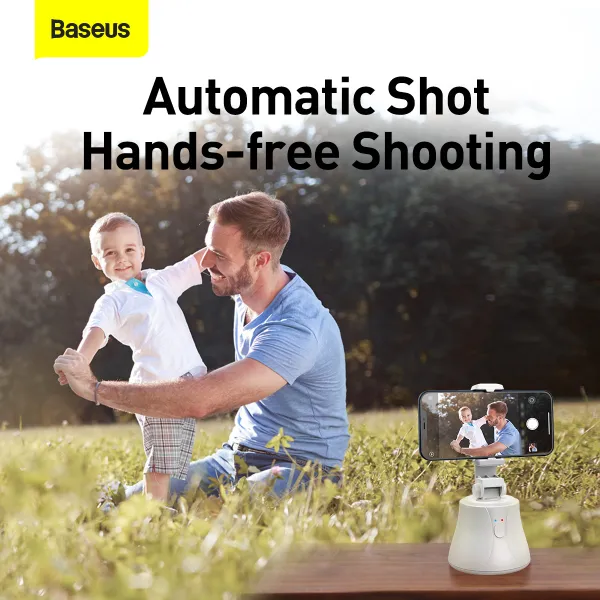 Універсальний тримач Baseus 360°AI Following Shot Tripod Head - це ідеальний помічник для створення влогів і різноманітного відео-контенту. Гаджет для людей, які захоплюються відеозйомкою, або стрімінгом за допомогою мобільного телефону. Штатив обладнаний датчиком руху, і за допомогою камери вашого смартфона може слідкувати за обличчям, зв'язок між телефоном і тримачем Baseus Al Following 360° виконується через Bluetooth v5.0. У тримача є функція автоспуску з 3-секундною затримкою для автоматичних знімків без рук.