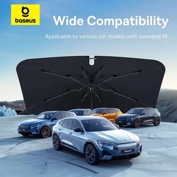 Під час встановлення автомобільна сонцезахисна шторка-парасолька автомобільна від сонця Baseus щільно прилягає до лобового скла, повністю блокуючи сонячні промені.