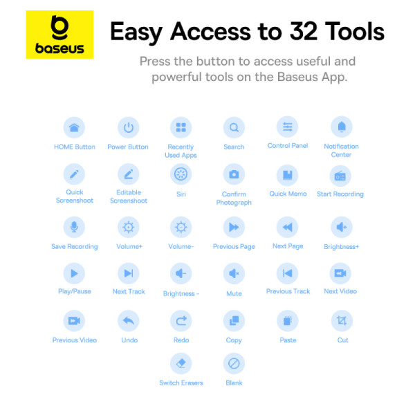 - Одне натискання на кнопку для доступу до 32 інструментів: Просто налаштуйте в додатку Baseus і швидко перемикайтеся між 32 швидкими функціями