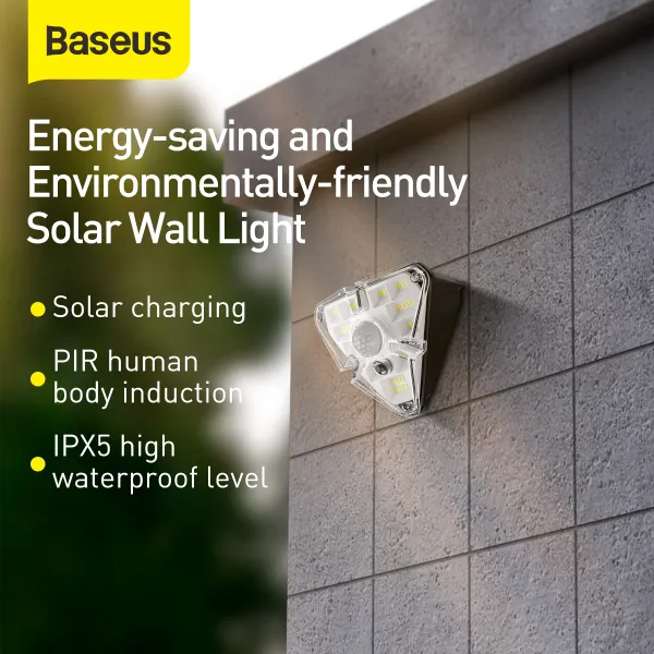 •Вуличний фасадний світильник Baseus Solar Energy 1.2Вт 120Lm на сонячній батареї 1200mAh з датчиком руху, датчиком світла, вбудованим акумулятором і бездротовою конструкцією - відкриває широкі можливості для використання освітлювального приладу. Сонячний світильник Baseus може бути встановлений буквально в будь-якому сонячному місці - ідеально підходить для саду, патіо, двору, під'їзної доріжки, вхідних дверей, гаража, сходів, паркану і т.д.