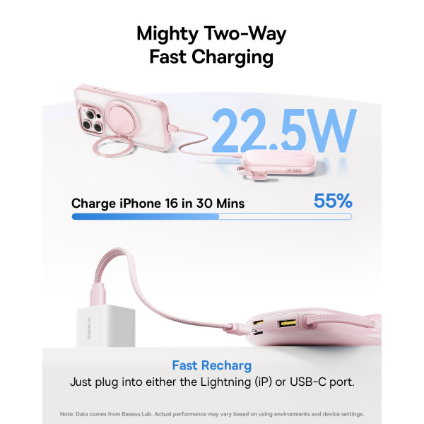 УМБ Baseus EnerFill FC21 Qpow 3 Ultra 10000mAh 22.5W з технологією QC3.0+PD3.0 + Кабель Type-C to Lightning Рожевий