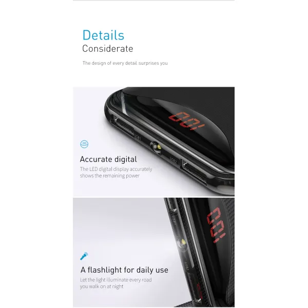 • Baseus Gentleman володіє міцним корпусом - виготовлений з високоякісних матеріалів і стійкий до подряпин. Лицьова поверхня пристрою виконана з пластика з рельєфом, тому акумулятор, випадково не вислизне з рук і не впаде. Він дуже практичний у використанні. Його зручно брати з собою в будь-яку поїздку, не турбуючись про випадкове пошкодження при транспортуванні.