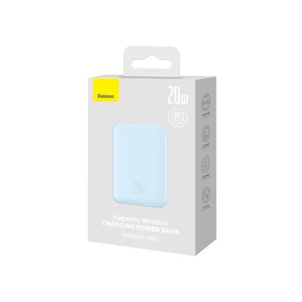 Зовнішній акумулятор Baseus Magnetic Wireless 2in1 6000mAh 20W 3A 3A QC3.0+PD3.0 з Бездротовою зарядкою Qi 15W оснащений 1 портом і бездротовою зарядкою. Роз'єм USB Type-C PD, який можна використовувати для заряджання самого павербанка і для заряджання смартфона, планшета або бездротової колонки. Наявність одного порту USB Type-C і бездротової зарядки - дає можливість заряджати 2 гаджети одночасно.