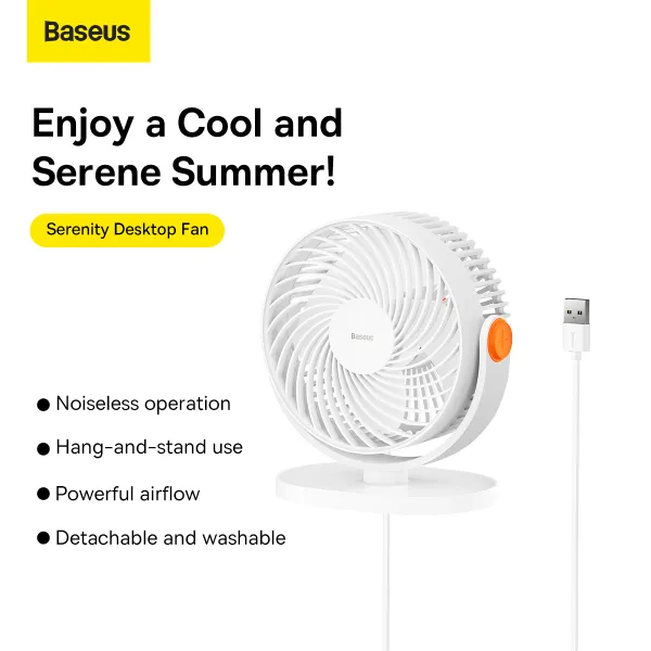Вентилятор портативний Baseus Serenity Desktop Fan настільний - це компактний вентилятор, який подарує вам прохолодний вітерець спекотного літа.
