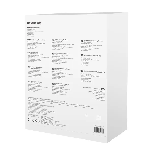 Благодаря литий-полимерному аккумулятору емкостью 2000 мАч, настольный вентилятор Baseus Serenity Desktop Fan Pro может работать до 7 часов без подключения к источнику питания. В свою очередь, мы можем запитать его практически от любого источника с портом USB: ноутбук, ПК, Power Bank, адаптер переменного тока и т.д.